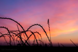 Le niveau de difficulté de la photo était relativement élevé: il ventait un peu. Comme il y avait peu de lumière compte-tenu de l’heure tardive, il fallait que j’utilise une ouverture assez grande et une vitesse lente (f4, 1/30 sec) parce que je voulais conserver un iso assez bas. Après plusieurs essais, j’ai fini par capter cette image sans qu’il y ait trop de bougé! Évidemment, la profondeur de champ était assez mince puisque je me tenais assez près du blé pour avoir un arrière plan flou.