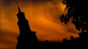 Je me suis donc amusé durant l’entracte à faire des prises de vue en exposant pour le ciel pour obtenir une silhouette de cette église qui se trouvait juste à côté de la salle de communautaire.