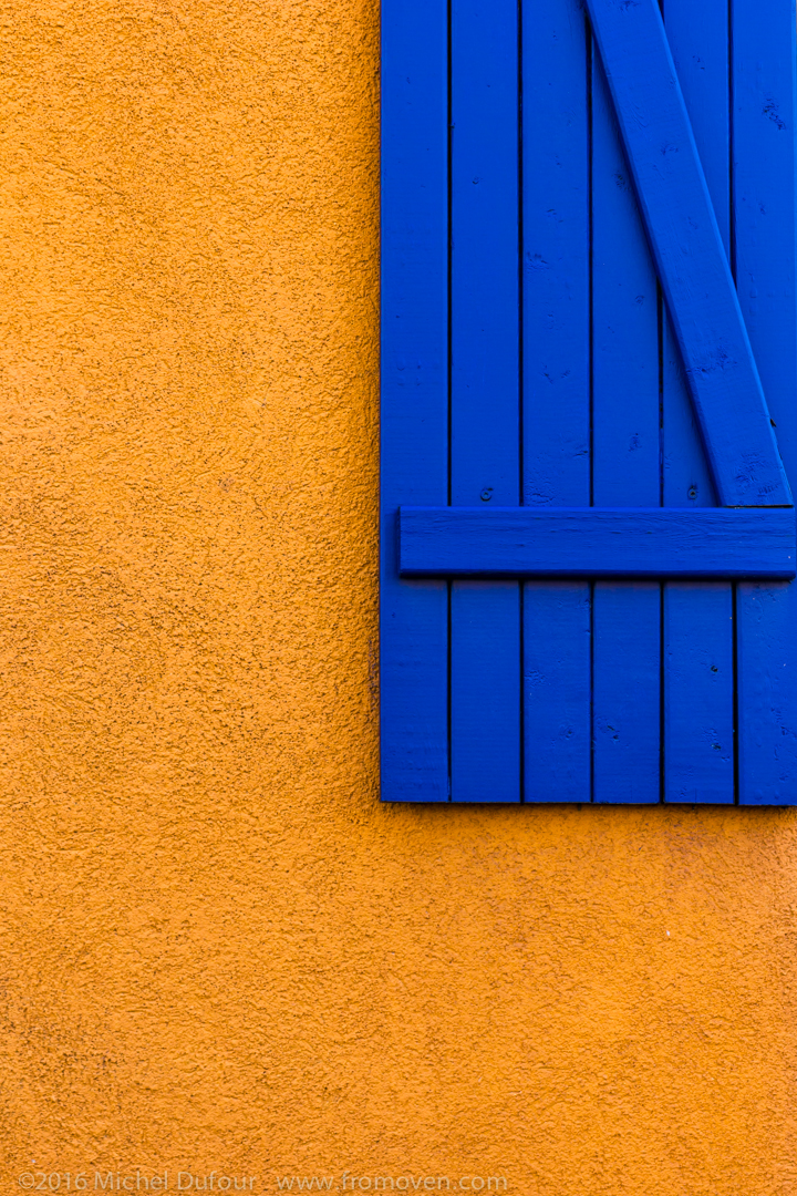 On one of these photo walks, I had noticed the blue shutters. There was a window beside it (obviously!) and I didn’t want to give the impression I wanted to photograph the interior… While composing my image, I figured that if I closed in, I would have some sort of an “L” shape. I could have been the same with the shutters if the picture was flipped horizontally but I thought it had more impact this way.