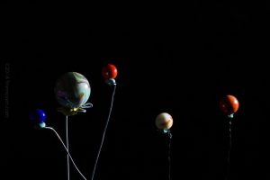 Since I photographed closely, there was the problem of the depth of field: I had arranged the marbles on different planes to simulate the scattering of the planets. But even with great depth of field, I found myself with somes balls out of focus. I told myself that I could focus on each of the marbles (photographed as a whole) and then I would choose those in focus in Photoshop (yes it was going to be a photo that would end in this software!). My idea did not work. So I re-shot the photos but this time, I took the marbles one by one.