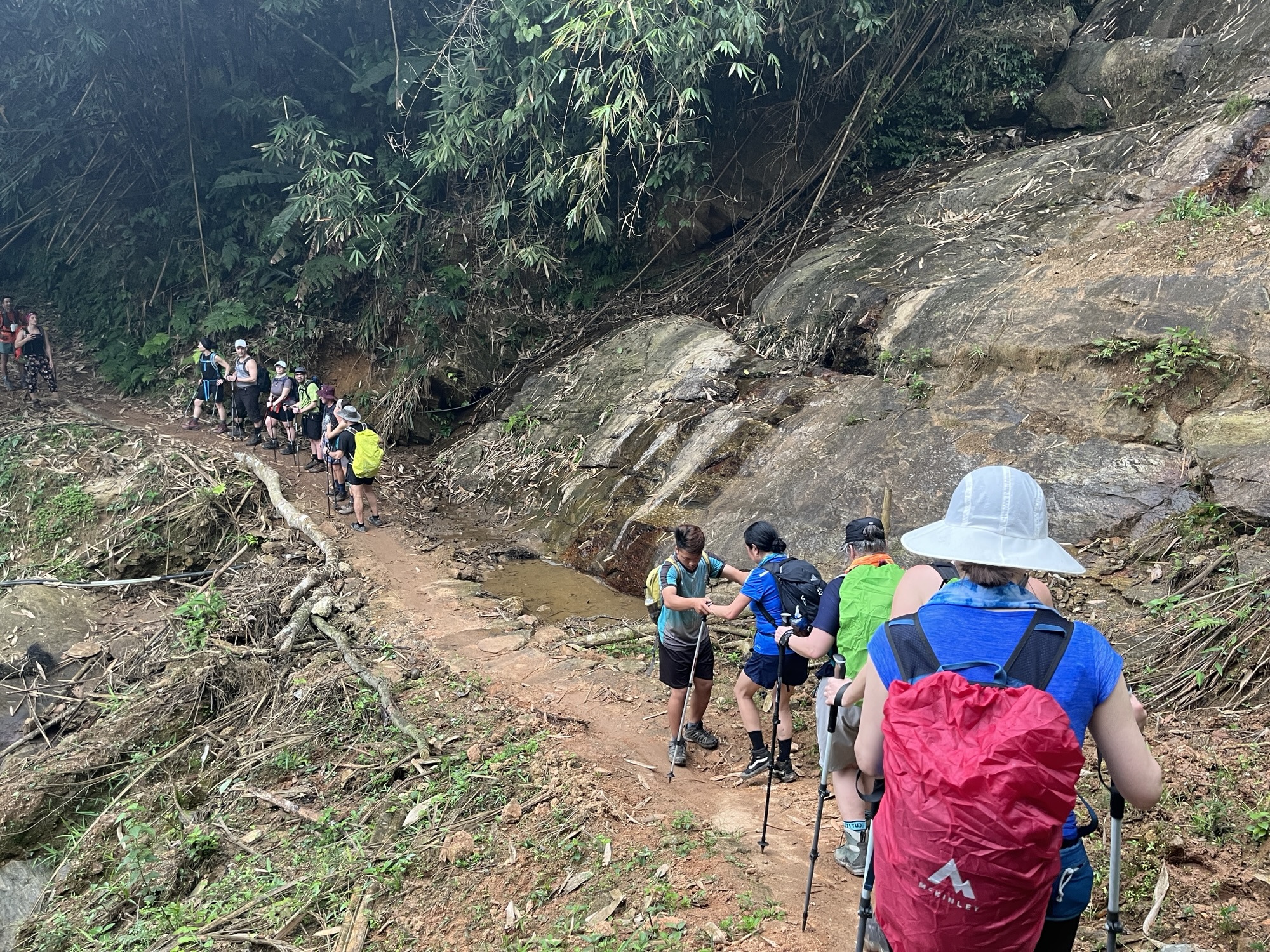 Après la randonnée difficile de la veille, nous avons entamé la 3e journée « plus facile ». Nous avions encore de gros sentiers à marcher combinés avec des pentes de 45 degrés durant 300m, suivi d’un palier pour repartir en remontant! Au moins, il n’y avait pas trop de forêt. Encore de magnifiques paysages.