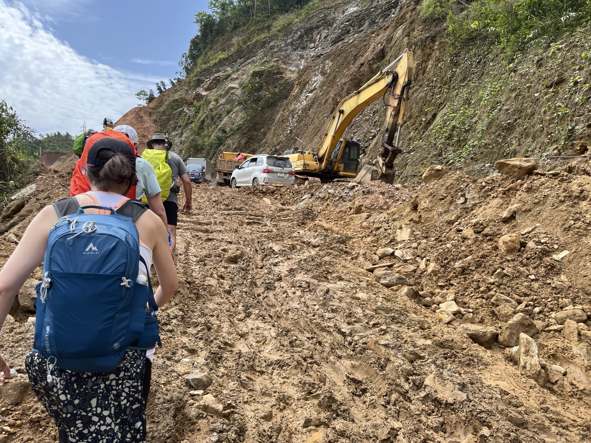 La journée la plus difficile a du être modifiée car à notre arrivée au jour 3, la pluie avait commencé et duré toute la nuit jusqu’au départ le lendemain. Les organisateurs ont pris la décision de modifier le parcours compte tenu des risques de blessures sérieuses pouvant survenir lors du parcours. De plus, les secours n’auraient eu aucun accès puisque c’était en pleine forêt. Le plan B fut de marcher jusqu’à un point de ralliement pour faire 12km de moto, marcher dans la boue pour rejoindre les bus qui nous amenaient dans l’autre portion sécuritaire de cette marche.