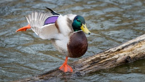 Une fois à la maison, j’ai passé à travers mes photos et suis tombé sur cette prise : j’avais figé le canard pendant qu’il se secouait la patte, donnant l’impression qu’il exécutait une arabesque…