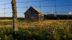 Tant qu’à être sorti, j’ai tout de même profité de l’occasion de faire quelques photos. Il y avait cette ancienne maison au coin d’un rang et j’aimais particulièrement la clôture qui montrait de l’âge. Après quelques prises de vue, j’ai choisi un angle pour exclure le plus possible du ciel et garder la maison derrière le grillage, comme si c’était un prisonnier!