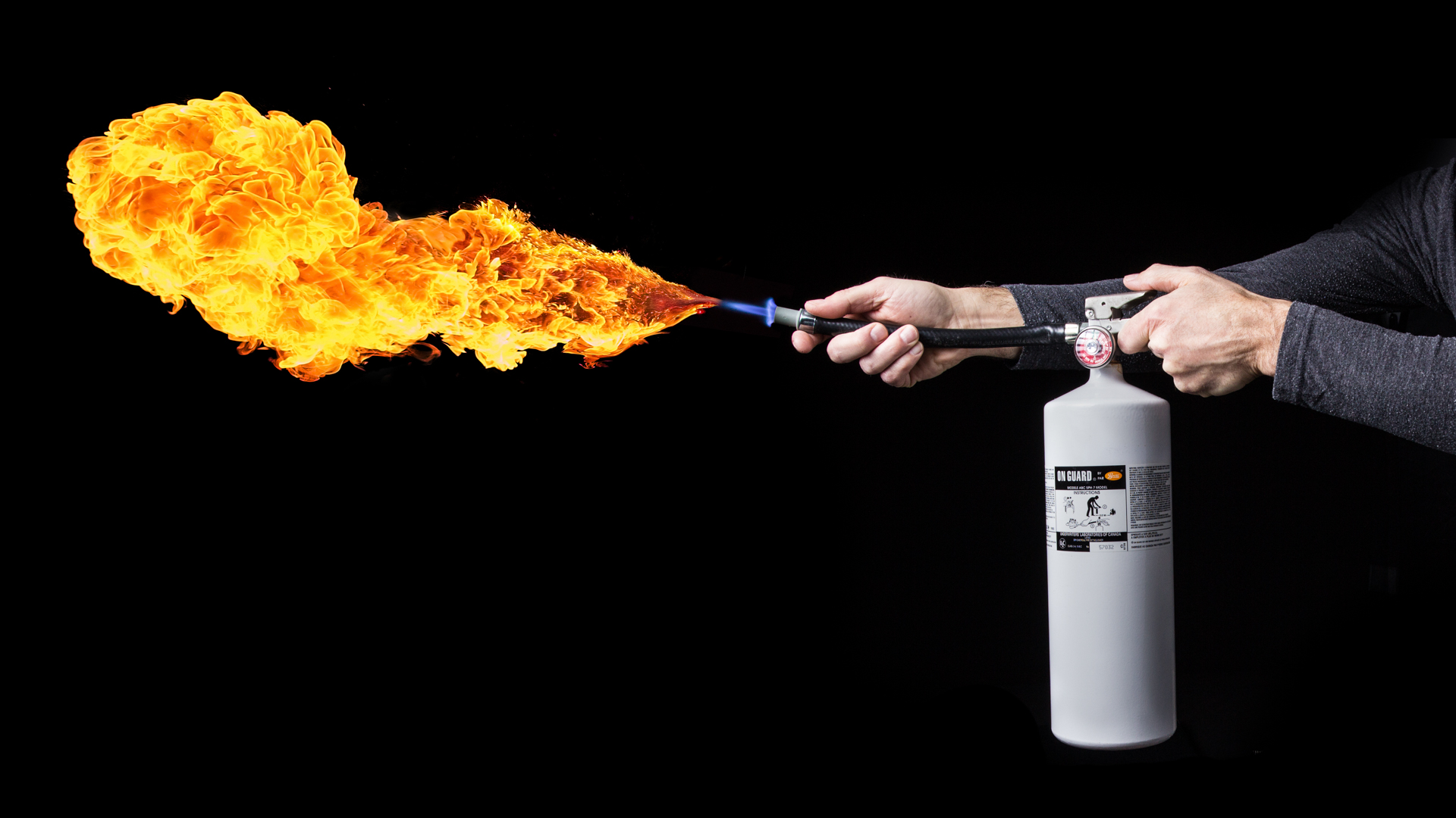 Dans ma pièce dédiée à la photo, j’ai capté l’image de l’extincteur, d’une torche à souder au propane. Ensuite, j’ai trouvé une image de flamme.