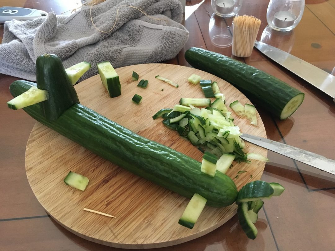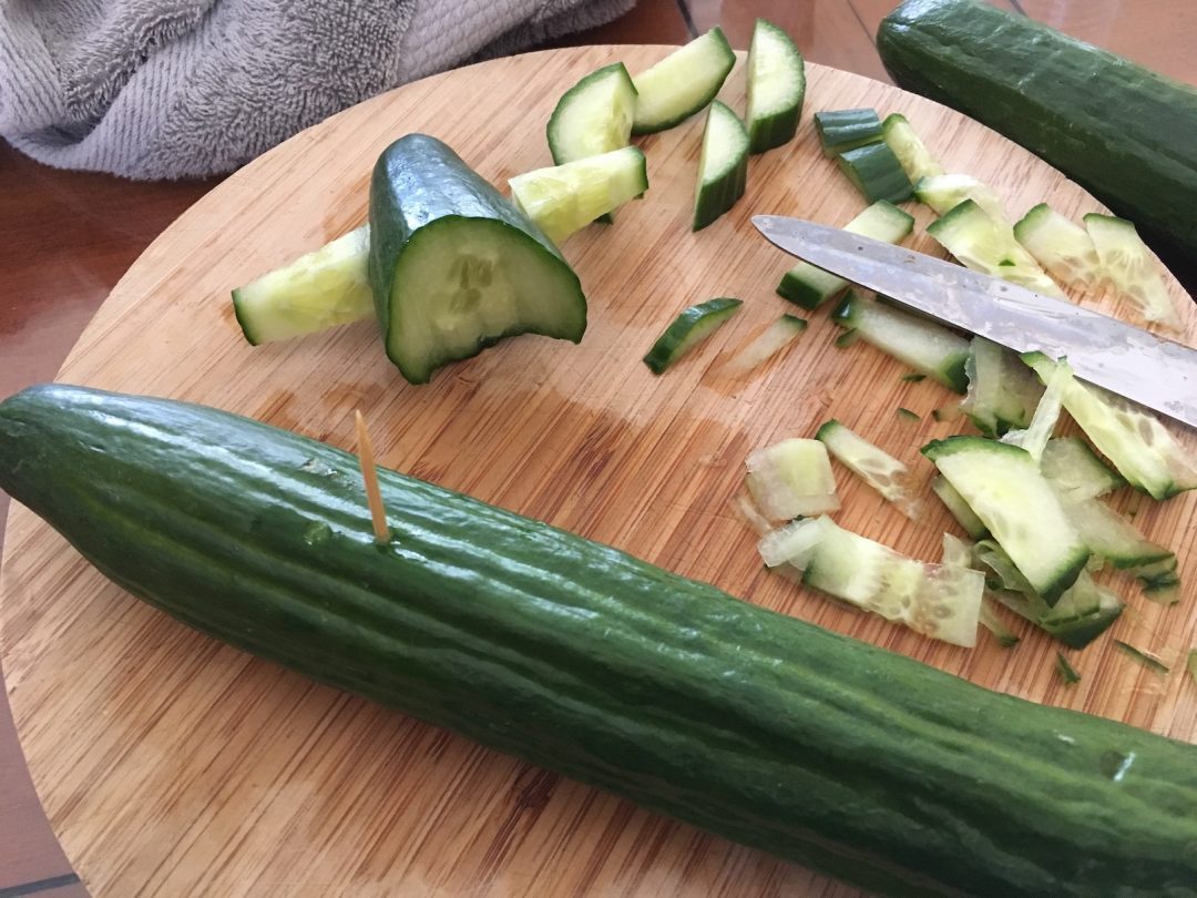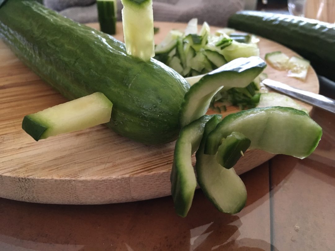 Vous ais-je dit que je déteste le concombre : j’en aime ni l’odeur ni son goût! J’essai à chaque année d’en faire la dégustation au cas ou ce dédain changerait. Rien à faire jusqu’à maintenant, ça ne passe pas. Et pourtant, je mange des sushis… sauf ceux qui ne sont composés que de concombres!