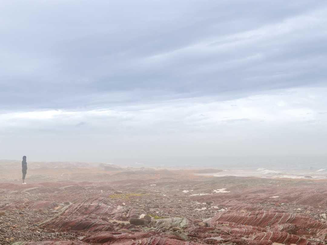 Ma conjointe, qui commençait à s’impatienter (et ne me voyant plus de par ma position sur la plage), est sortie de l’auto – pendant que la pluie reprenait son combat! Je ne l’avais pas vue descendre sur la plage.